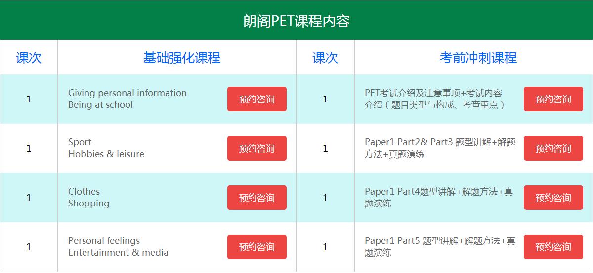朗阁PET课程说明